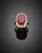 Cushion ct. 6 circa ruby and old mine diamond yellow gold ring, g 6.40 circa size 12/42.