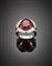 Cushion shape ct. 5.49 ruby and baguette diamond platinum ring, diamonds in all ct. 1 circa, g 8.65 circa size 7/47. Marked 307 AL.