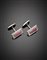 Gemelli rettangolari in oro bianco con diamanti e rubini, g 16,17 circa, lungh.