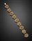 Bracciale in oro giallo 500/1000 modulare con microperle, smeraldi e smalti, g 39,55 circa, lungh. cm 19 circa.