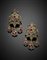 Orecchini pendenti in oro giallo e argento con diamanti a mezza rosetta e rubin