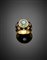 Anello in oro giallo con smalto nero e piccoli diamanti, al centro un topazio a