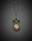 Pendente a fiocco con miniatura in argento, smeraldi e diamanti a mezza rosetta