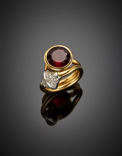 Lot 1147 | MANFREDI Anello in oro giallo con granato rotondo e diamanti a rifinirlo, detta