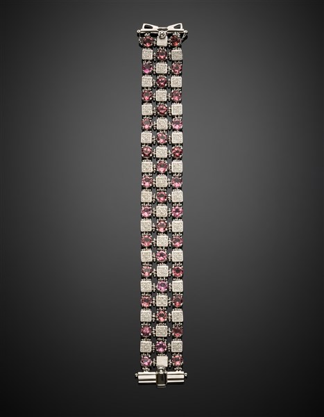 *White gold diamond and pink tourmaline modular band bracelet, g 54.58 circa, length cm 18 circa.