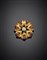 Bi-coloured partly glazed gold ruby and diamond brooch, g 9.70 circa, diam. cm 2.70 circa. Marked 543 MI.