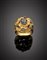 Anello in oro giallo a foglie rifinito con zaffiri rotondi, g 10,70 circa misur