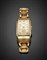 Orologio da polso da donna in metallo dorato e sagomato, bracciale adattabile marcato U.S.PAT.2,064,760, g 38,90 circa, lungh. cm 16,80 circa. Quadrante firmato Gruen Curvex, cassa firmata Gruen 14K gold filled. (difetti)