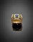 Anello in oro giallo con zaffiri carrè e diamanti, g 8,72 circa misura 13/53. (