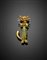 Broche a guisa di gatto in oro giallo con prenite tinta, rubini per gli occhi,