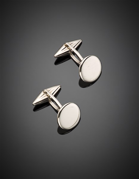 White gold round cufflinks, g 9.69 circa. Marked 93 BO.