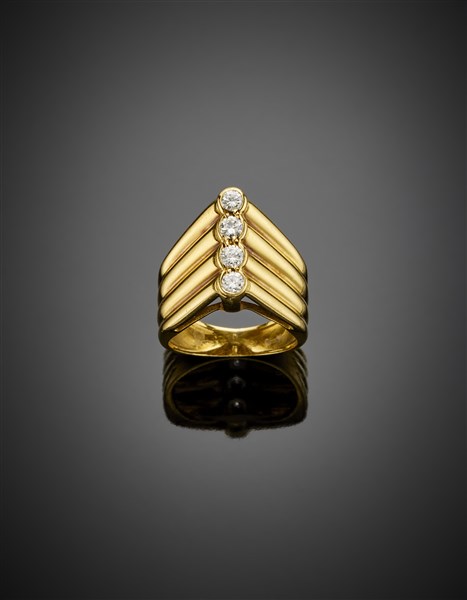 Yellow gold diamond chevron ring in all ct. 0.40 circa, g 7.03 circa size 13/53.