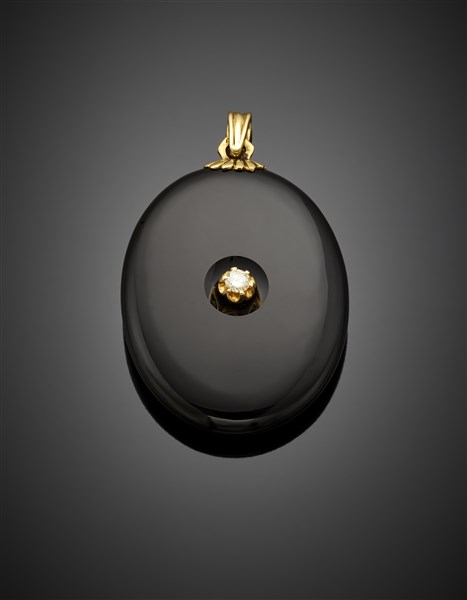 Lot 1280 | Pendente portafotografie in onice e oro giallo rifinito con diamante, g 22,31 c