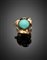 Anello in oro 585/1000 e argento con turchese cabochon centrale di mm 13.30 cir