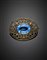 Spilla in oro e argento traforata rifinita al centro con zaffiro sintetico oval