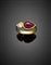 Anello in oro giallo e bianco con rubino cabochon a goccia e diamante a cuore,
