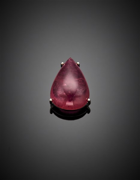 Pendente a goccia con tormalina rosa cabochon di ct. 12,00 circa montato in oro