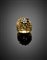 Anello in oro giallo e bianco a foglie con diamanti, g 13,95 circa misura 15/55. (difetti)