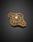 Spilla/pendente in oro giallo rifinita con perle, turchesi cabochon e corindoni