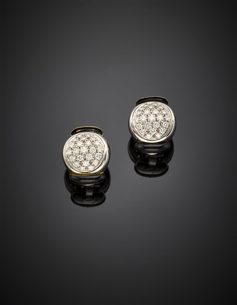 White gold diamond and onyx earrings in all ct. 1.20 circa, g 18.13 circa, length cm 1.90 circa. Signed Harpo. (defects and losses)