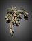 Rose cut diamond with round and cabochon emerald mobile flower silver and 9K gold brooch, g 22.71 circa, length cm 7.80 circa. (defects)