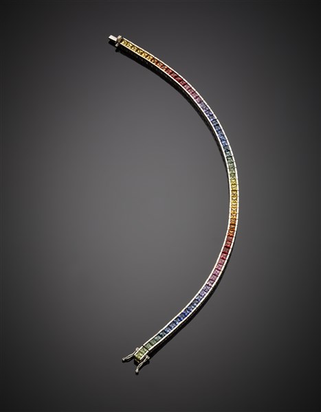Lot 1532 | Bracciale tennis in oro bianco con gemme multicolori, g 18,50 circa, lungh. cm