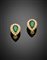 Orecchini in oro giallo con diamanti rotondi per complessivi ct. 0,60 circa a contornare due smeraldi a goccia per complessivi ct. 2,60 circa, g 8,83 circa, lungh. cm 1,60 circa.