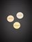 Three small yellow white and pink gold plaques inscribed "Amore, Salute, Denaro", on the back "fattore" and "C" all in italic, g 2.99 circa, diam. cm 1.60 circa. With original pouch