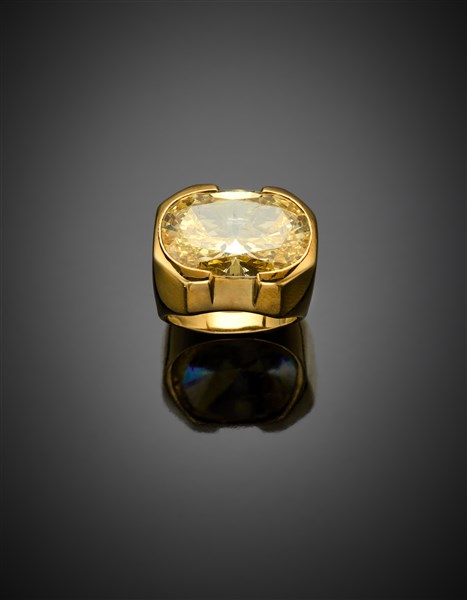 Anello in oro giallo con zirconia cubica ovale gialla di ct. 14 circa, g 12,70