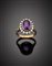 Anello in oro 333/1000 e argento, al centro un'ametista ovale rifinita con diam