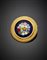 Spilla rotonda in oro giallo con murrina a fondo blu, g 10,47 circa, diam. cm 3