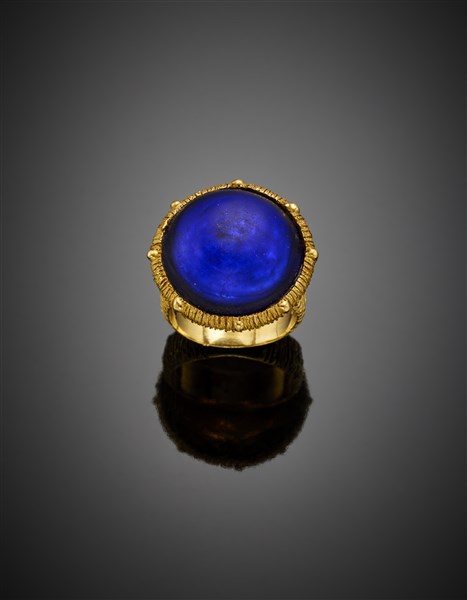 Anello in oro giallo e pasta vitrea blu, g 12,91 circa misura 11/51.