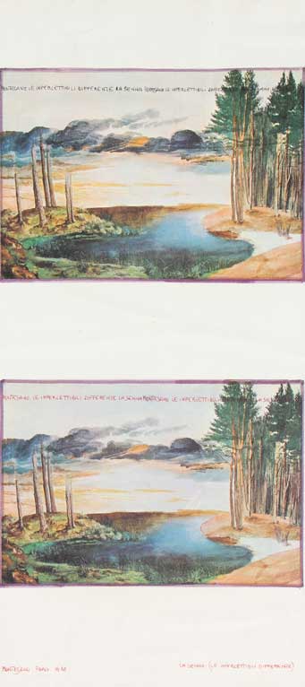 Gian Marco MONTESANO Torino 1949 La Senna (le impercettibili differenze), 1972 Tecnica mista su carta cm 55 X 24 Firma, data ‘Montesano, Paris, 1972’ (in basso a sinistra) titolo ‘La Senna – le impercettibili differenze’ (in basso a destra)