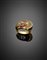 Anello in oro giallo traforato rifinito con rubini sintetici e diamanti, g 5,52