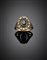 Anello in oro giallo e argento con zaffiro ovale e diamanti a mezza rosetta, g