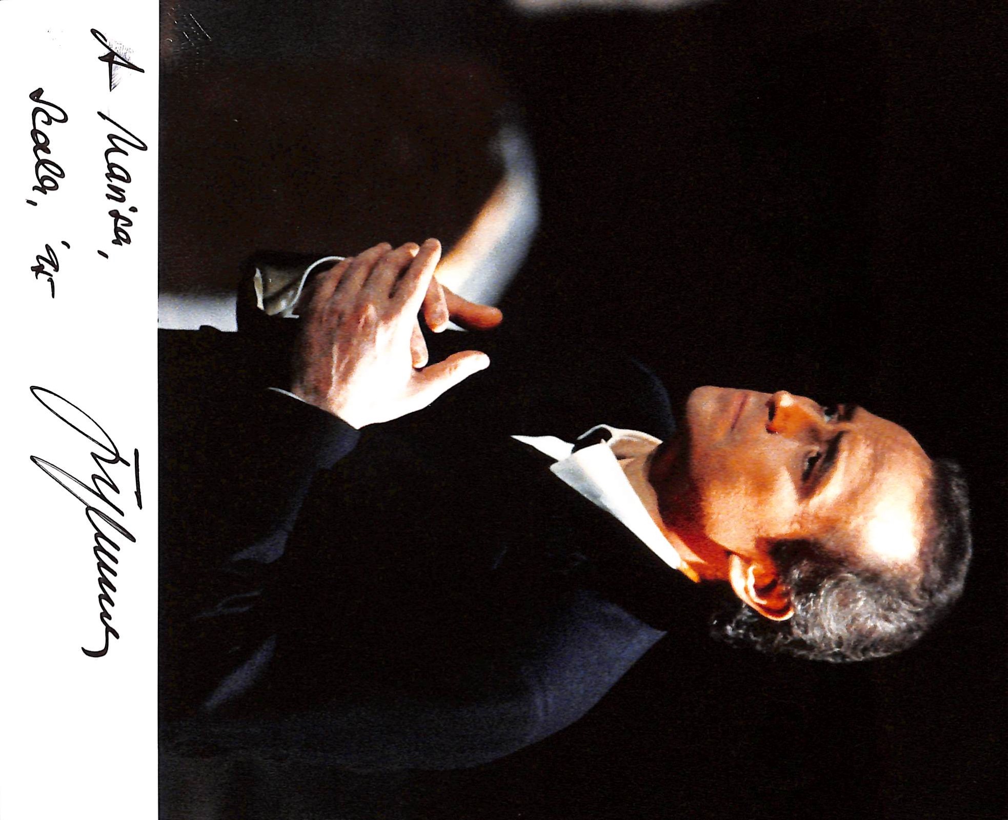 Celebre tenore spagnolo, molto apprezzato per i ruoli ricoperti specialmente nel repertorio del melodramma donizettiano, verdiano e pucciniano. Una parte della fama che ha ottenuto in tutto il mondo è dovuta anche alla partecipazione ai concerti dei Tre Tenori, accanto a Luciano Pavarotti e a Plácido Domingo. Ritratto autografato dell'artista con dedica datata Teatro Alla Scala, 1995.