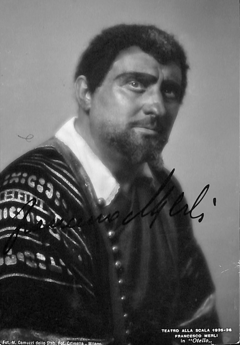 Ha studiato nella sua città, debuttando poi al Teatro alla Scala di Milano nel 1916, nel ruolo di Alvaro nel Fernando Cortez di Gaspare Spontini. Il 12 settembre 1918 è Elisero nella prima di Moïse et Pharaon di Rossini diretto da Tullio Serafin con Nazzareno De Angelis ed in dicembre canta nella prima assoluta di Urania di Alberto Favara alla Scala. Nel 1919 al Teatro San Carlo di Napoli diretto da Leopoldo Mugnone è Luigi ne Il tabarro con Domenico Viglione Borghese e Rinuccio in Gianni Schicchi con Gilda Dalla Rizza e Viglione Borghese ed al Teatro Comunale di Bologna Paolo in Francesca da Rimini (Zandonai) diretto da Serafin con Giuseppe Nessi, nel 1920 Walter von Stolzing ne I maestri cantori di Norimberga diretto da Serafin con Maria Zamboni, Ernesto Badini ed Enrico Molinari al Teatro Regio di Torino e nel 1921 a Bologna Walter in Loreley diretto da Serafin ed al Teatro Regio di Parma Enzo ne La Gioconda con Giannina Arangi-Lombardi. Si è esibito in molti teatri europei e americani, tra cui il Covent Garden di Londra, dove è stato il primo interprete di Calaf nella Turandot di Giacomo Puccini, compiendo anche tournée in Belgio e in Australia. Ha cantato stabilmente nell'ambito della stagione lirica del Teatro alla Scala ed in quella del Teatro dell'Opera di Roma, dove negli anni trenta del XX secolo è stato celebre nelle parti di Otello, Dick Johnson (La fanciulla del West), Sansone e Don Josè (Carmen). Ha cantato al Metropolitan di New York quattro opere (Aida, Lucia di Lammermoor, Simon Boccanegra e Madama Butterfly) nel 1932, a fianco di illustri artisti come Lily Pons, Giuseppe De Luca, Ezio Pinza, Lawrence Tibbett (Simone e Amonasro). Il 20 marzo 1932 cantò Ah si ben mio... Di quella pira, a conclusione di un concerto di beneficenza tenutosi al Met, a fianco di Georges Thill, tenore già affermato ed acclamato in tutto il mondo. Il giovane Merli fu molto apprezzato, tanto che fu invitato a prendere parte ad un altro concerto di gala il 10 aprile dello stesso anno, insieme a Lauritz Melchior, specializzato tenore wagneriano, dotato di una voce molto potente. Ritratto fotografico autografo in vesti di Otello.