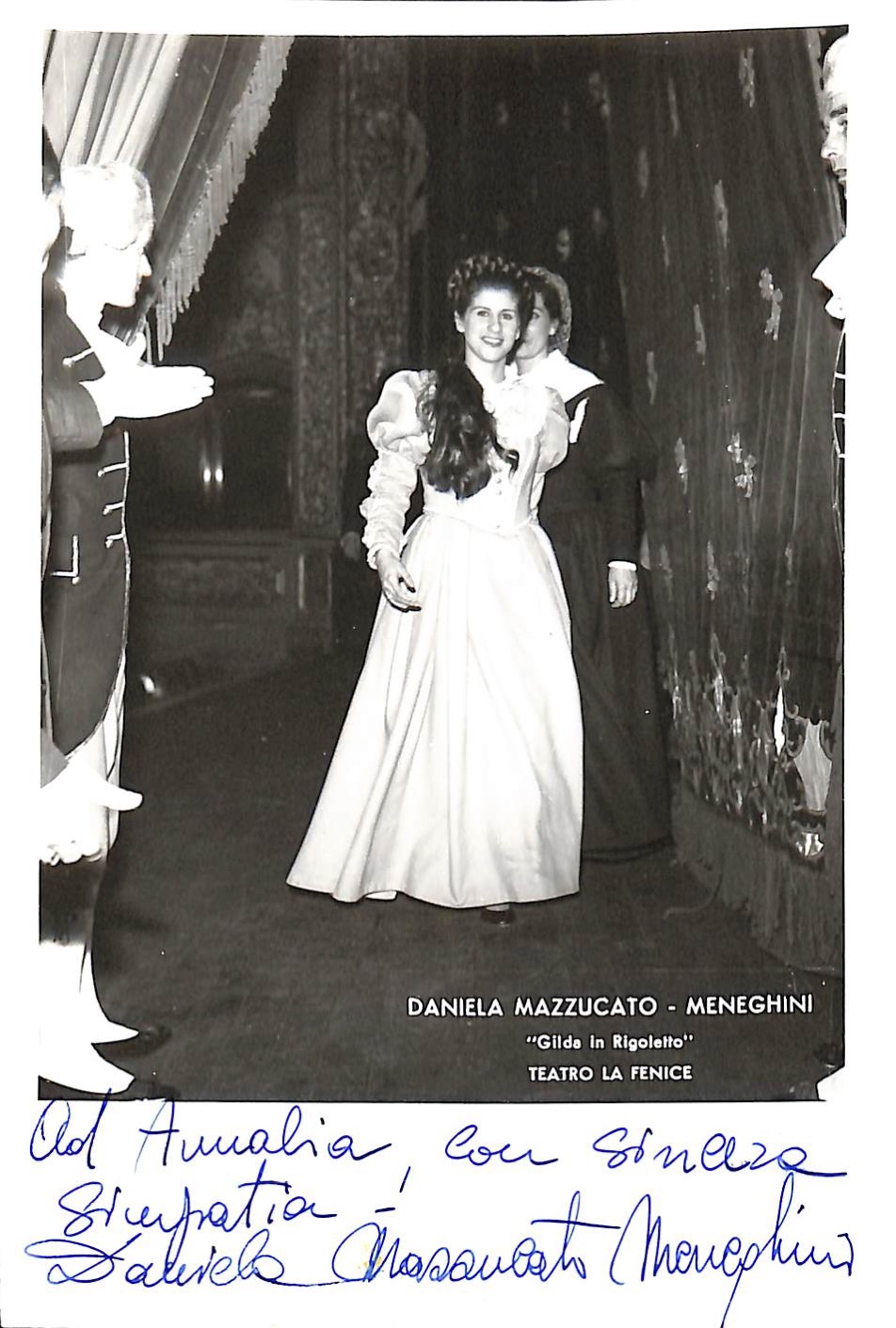 Ritratto fotografico della soprano italiana nelle vesto di Gilda nel Rigoletto con dedica autografa.