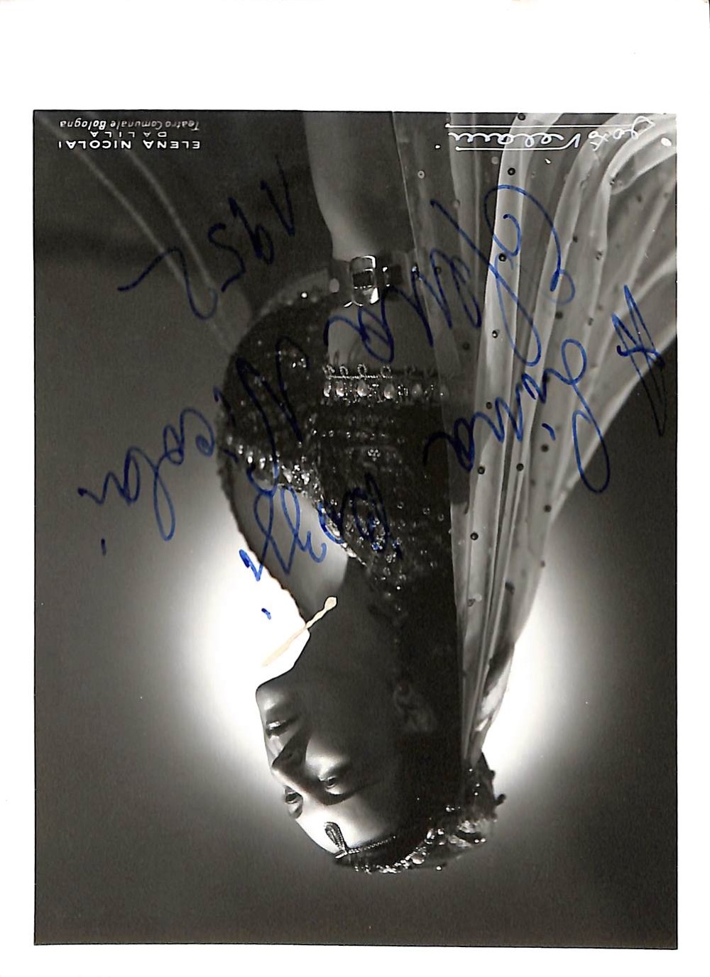 Ritratto della mezzosoprano bulgara naturalizzata italiana nelle vesti di Dalila con dedica autografa.