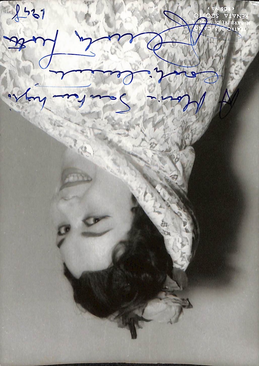 Ritratto fotografico della soprano italiana in vesti di Rosina del Barbiere di Siviglia, con dedica autografa datata 1958.