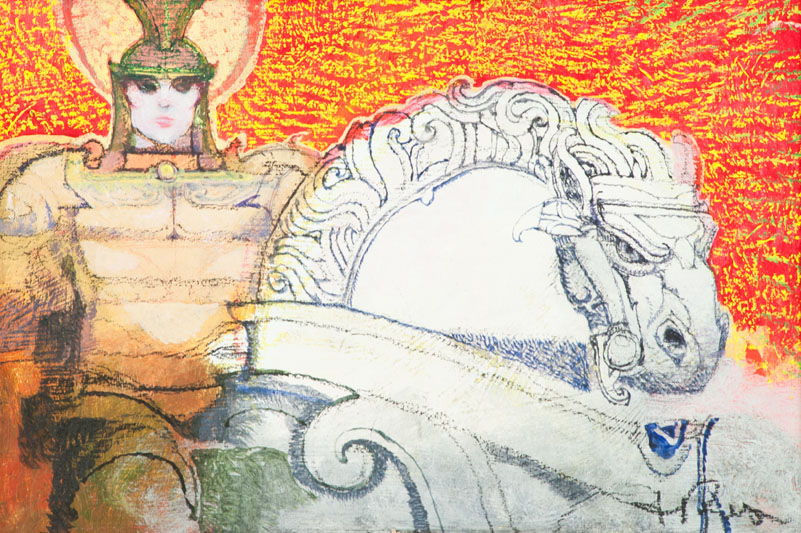 Raffaele De Rosa Figura e cavallo Tecnica mista su tavola cm. 19,5x29 Firmato...