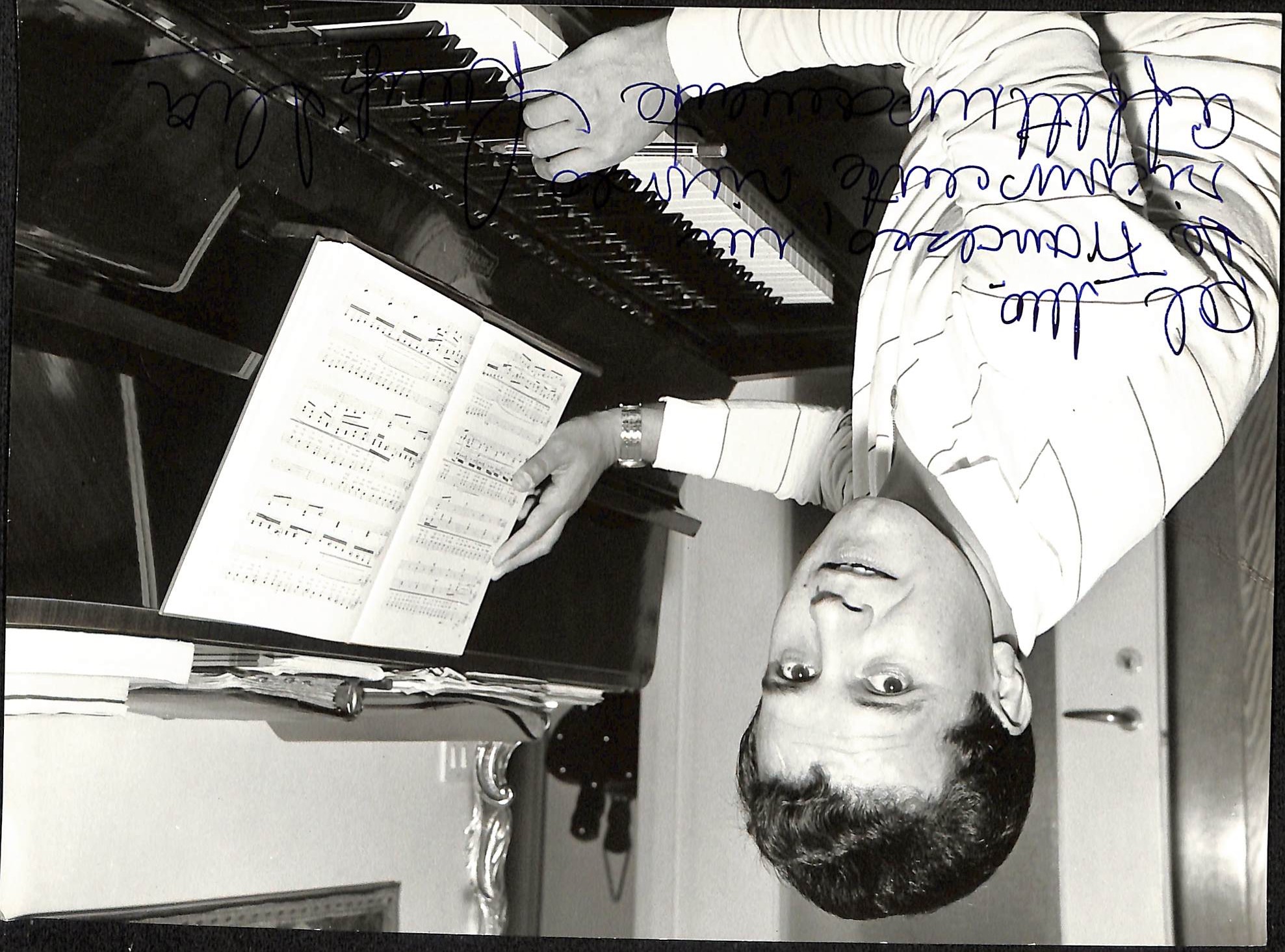 Ritratto del tenore peruviano seduto al pianoforte con dedica autografa.