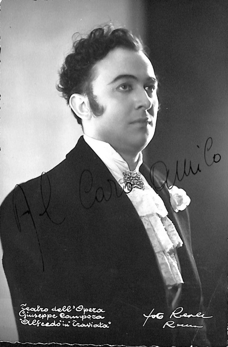 Ritratto autografo del tenore italiano in vesti di Alfredo nella Traviata.