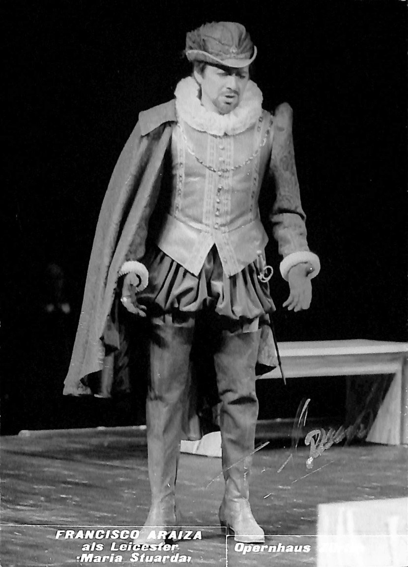 Ritratto autografo del tenore messicano in vesti di Leicester nella Maria Stuarda presso Opernhaus di Zurigo.