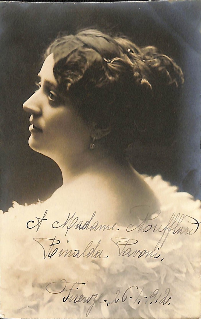 Ritratto fotografico della soprano italiana con dedica autografa a Madame Nouffard Firenze 26 aprile 1912.