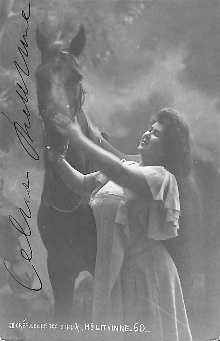 Ritratto autografo della soprano russa naturalizzata francese in vesti di scena nel Crepuscolo degli Dei.