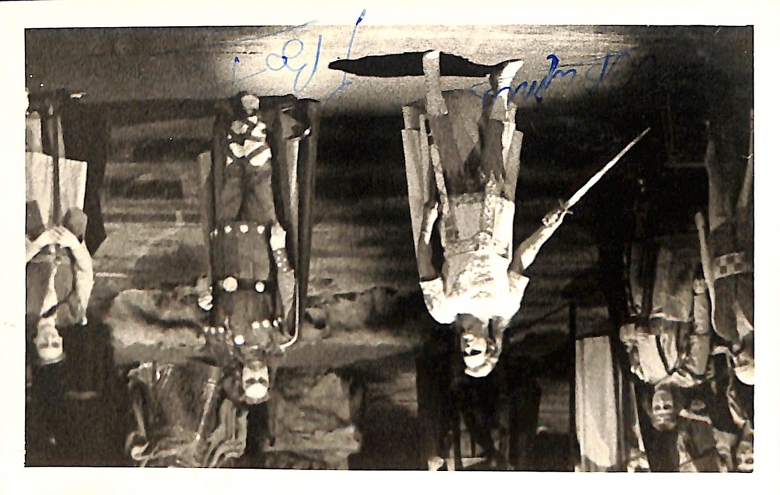 Ritratto di scena del tenore Gustave Botiaux nel Crepuscolo degli Dei assieme al collega Bianco.