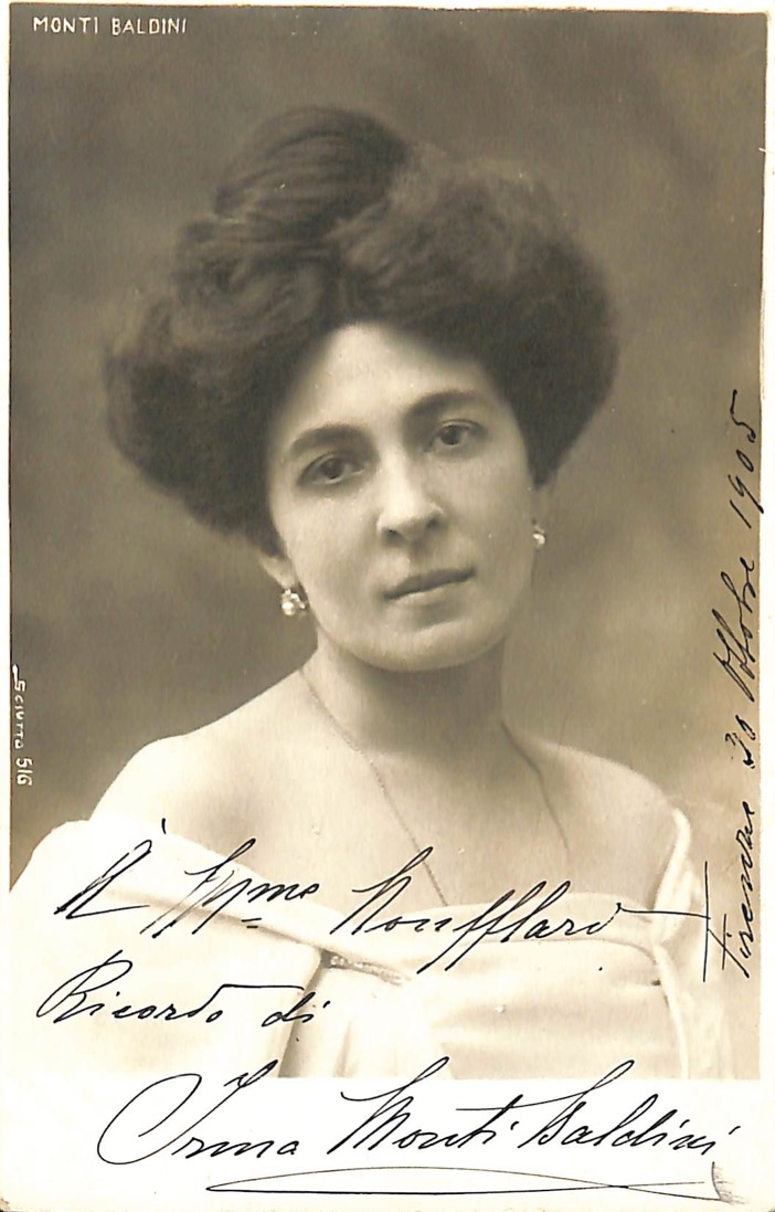 Ritratto della contralto, mezzosoprano e soprano italiana con dedica autografa a Madame Nouffard, datata Firenze 30 ottobre 1905.