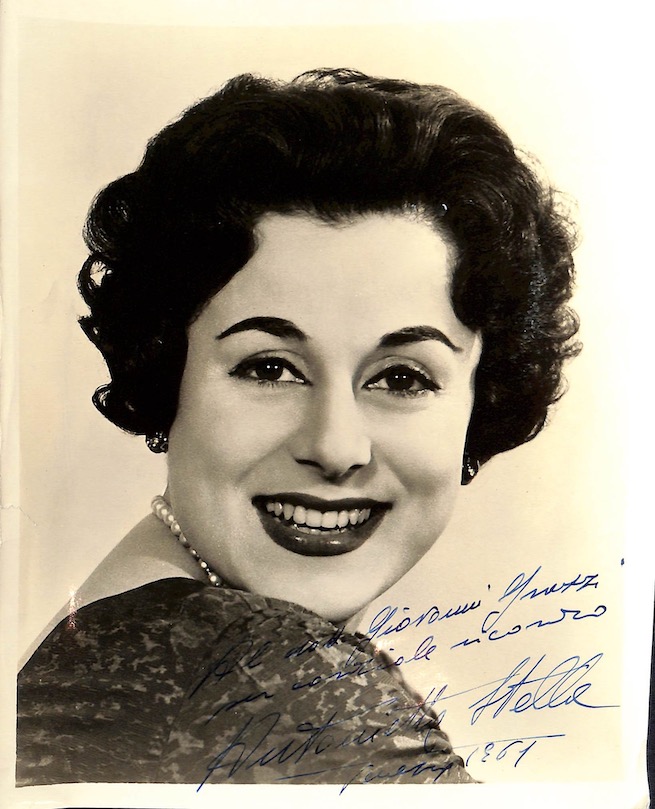 Antonietta Stella è stata interprete di primo piano della seconda metà del Novecento nel repertorio dell'opera italiana, caratterizzandosi come soprano lirico-spinto, dotato di notevole agilità ed estensione, e immediatamente riconoscibile per il particolare e suggestivo timbro. Fotografia con firma autografa della celebre soprano con dedica datata 1961.