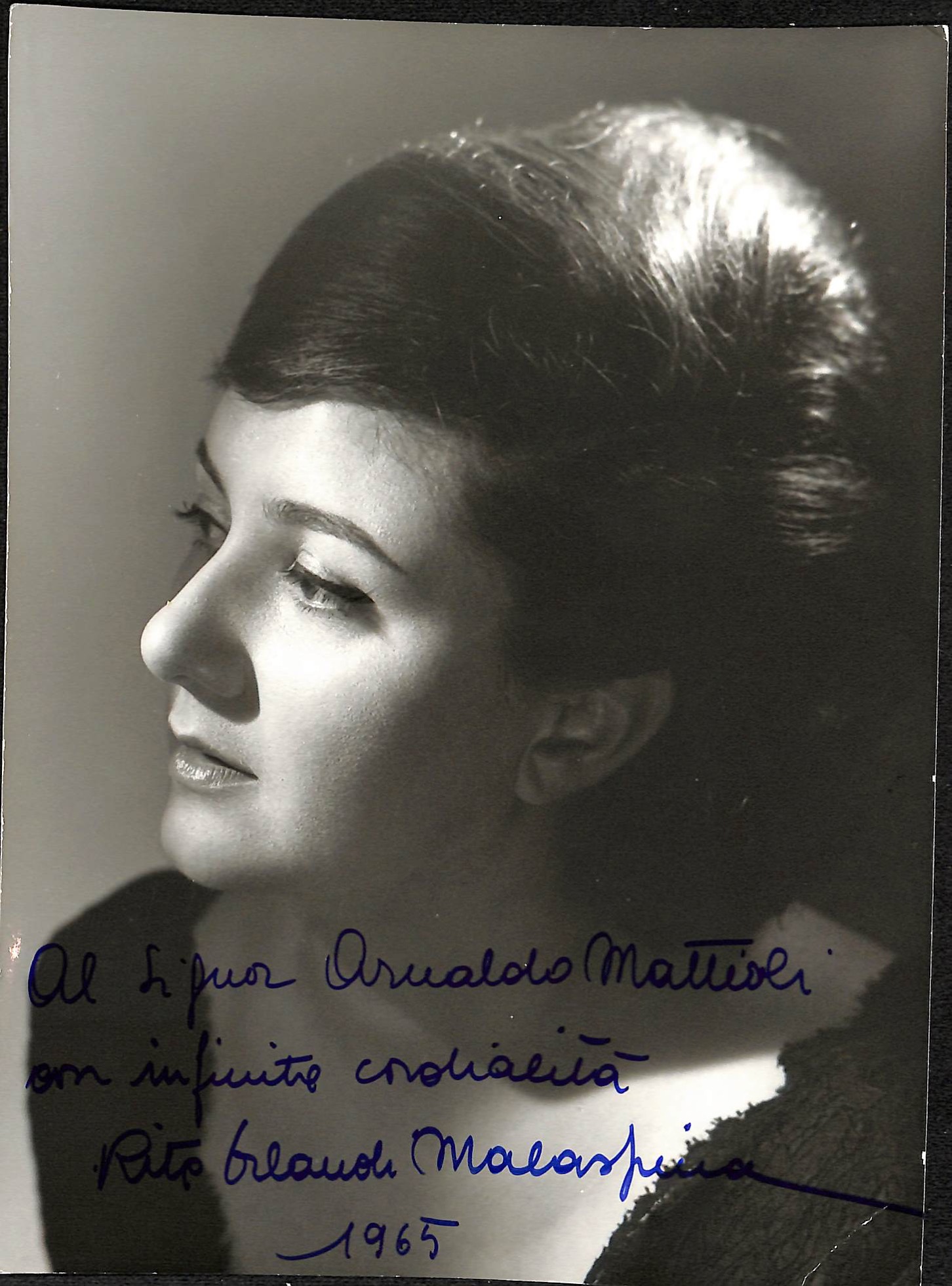 Ritratto autografo della soprano italiana con dedica autografa datata 1965.
